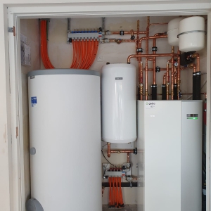 De werkzaamheden van Geba bestonden uit het installeren van een duurzame installatie met warmtepompen, vloerverwarming, wtw installatie, sanitair en loodgieterswerk.