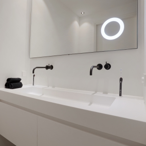 Een fullservice project waarbij de nieuwe kopers nog vóór oplevering de mogelijkheid hadden om de standaard te leveren badkamers door Geba naar eigen smaak te laten aanpassen.
